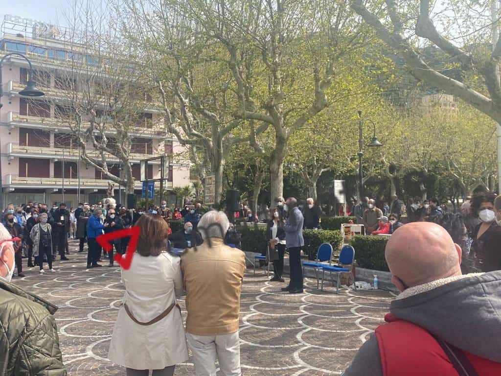 La manifestione, iniziata intorno le 10.30, ha visto una grande partecipazione di persone, tutte presenti nel rispetto delle norme anticovid vigenti, con tutti i partecipanti che dovranno indossare la mascherina e rimanere in posizione statica almeno a 2 metri di distanza l’uno dall’altro.