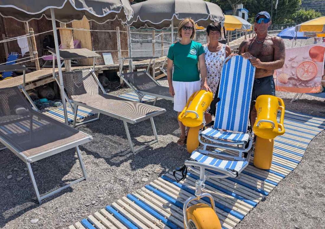 Due sedie Job per l’ingresso in acqua, due sedie galleggianti, camminamenti fino alla battigia, uno spogliatoio attrezzato con doccia e lavapiedi, postazioni con lettini e ombrelloni ad altezza facilitata in una porzione di spiaggia dedicata, un campo estivo sull’arenile interamente dedicato ai bambini con difficoltà motorie a Maiori. Grazie al finanziamento del progetto “Turismo BalneAbile”, promosso dalla Regione Campania e finanziato dalla Presidenza del Consiglio dei ministri – Ufficio Disabilità, l’amministrazione guidata dal sindaco Antonio Capone ha completato e potenziato le dotazioni già esistenti, rendendo ancora più accessibile alle persone con disabilità l’arenile, che così diventa il più accessibile della Costa d’Amalfi. In più, l’amministrazione ha stabilito che l’accesso alle strutture per il bagno e all’assistenza in spiaggia sia gratuito per tutti, sia italiani che stranieri, prenotando la discesa attraverso call center al numero 340 933 5105.