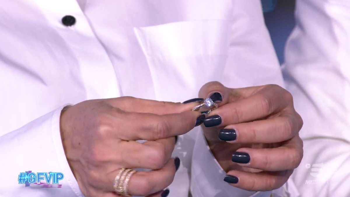 Il presentatore ha chiesto a Sonia Bruganelli di valutare la qualità dell’anello, soprattutto se fosse tempestato di diamanti. L’opinionista, scherzando ma non troppo, ha detto che non brillava tanto.