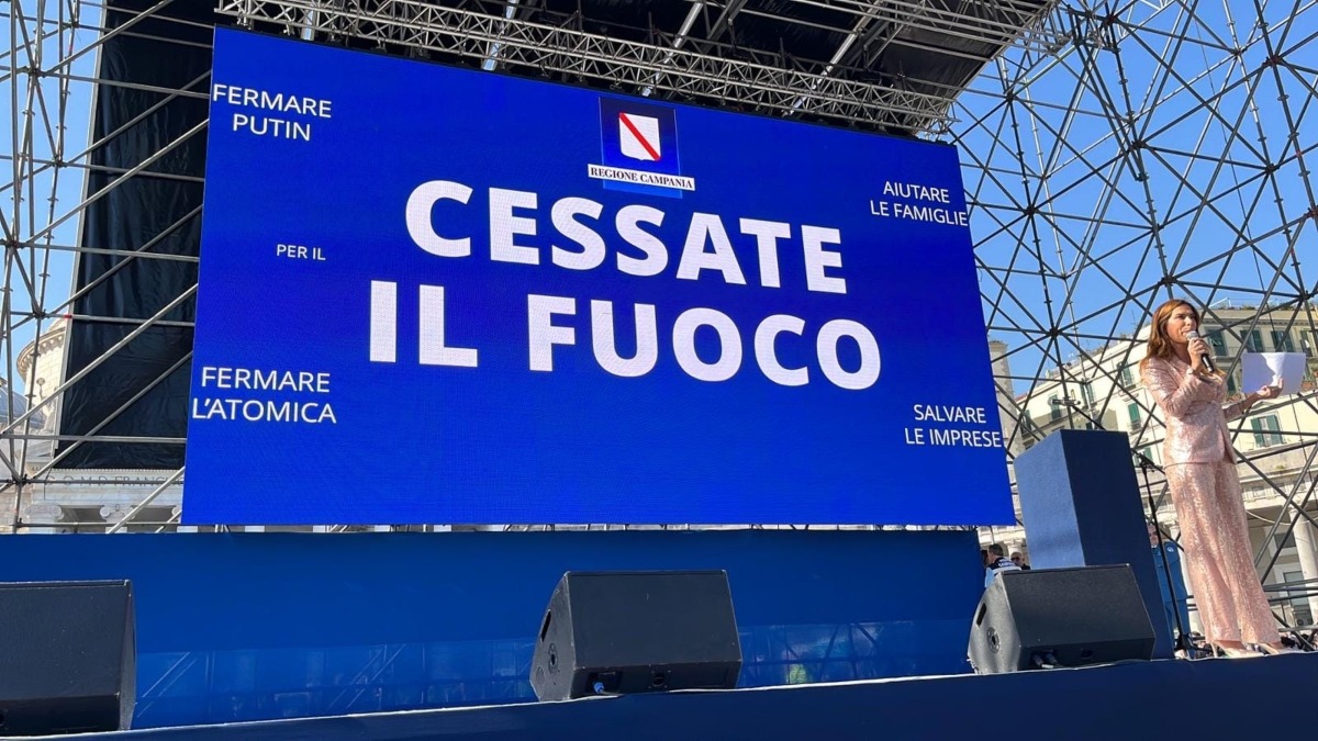 “Da Napoli ci sono due messaggi che si intrecciano – ha affermato il presidente della Regione Vincenzo De Luca a margine della manifestazione – Il Mediterraneo significa multilateralismo e multiculturalismo e apertura ai popoli, alle culture e alle religioni. Giovani significa futuro, siamo la regione più giovane di Italia, vedete quante migliaia di ragazzi in questa piazza che è per loro perché per loro dobbiamo arrivare al cessate il fuoco e svegliare l’Italia, l’Europa dal sonno della ragione“.
