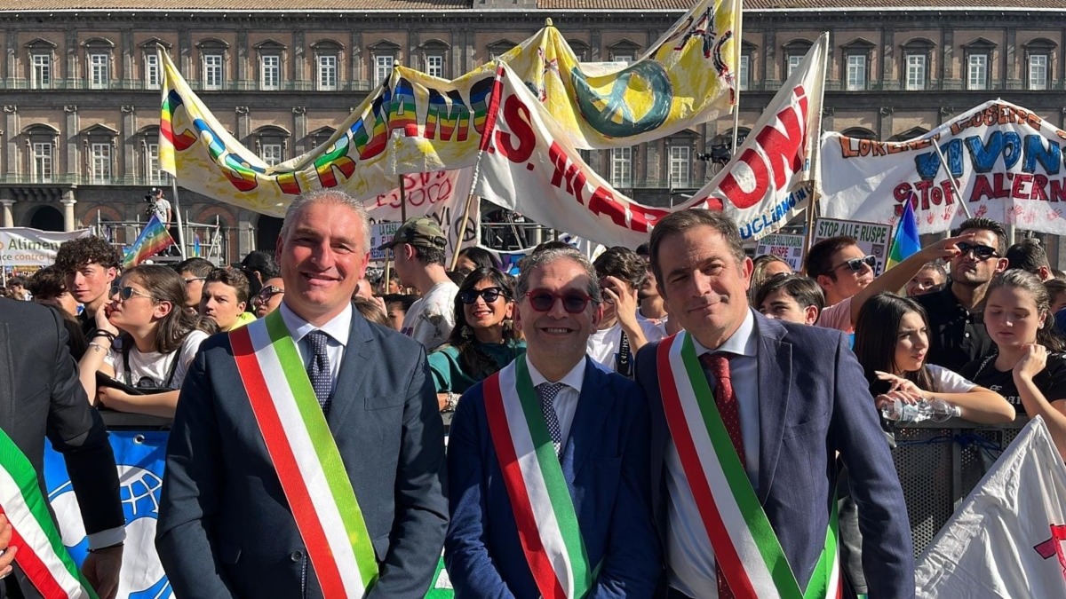 “Da Napoli ci sono due messaggi che si intrecciano – ha affermato il presidente della Regione Vincenzo De Luca a margine della manifestazione – Il Mediterraneo significa multilateralismo e multiculturalismo e apertura ai popoli, alle culture e alle religioni. Giovani significa futuro, siamo la regione più giovane di Italia, vedete quante migliaia di ragazzi in questa piazza che è per loro perché per loro dobbiamo arrivare al cessate il fuoco e svegliare l’Italia, l’Europa dal sonno della ragione“.