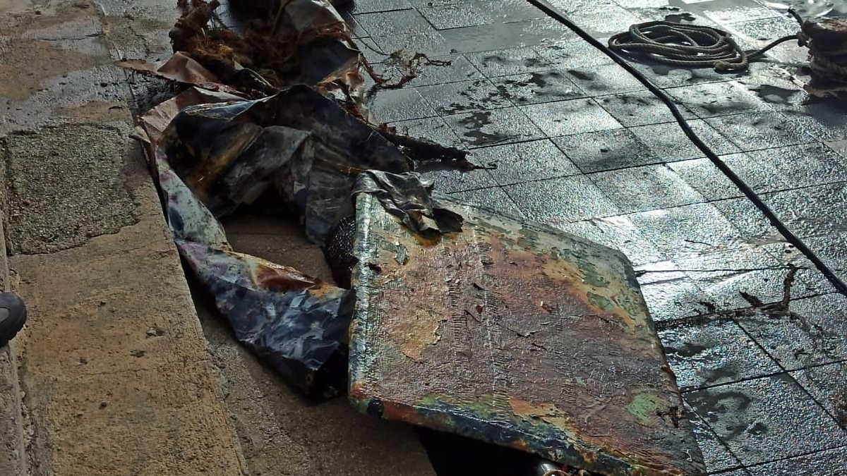 Reti da pesca in gran quantità, ferri arrugginiti, bottiglie e perfino un vecchio e malandato cassonetto per la raccolta dei rifiuti solidi urbani.