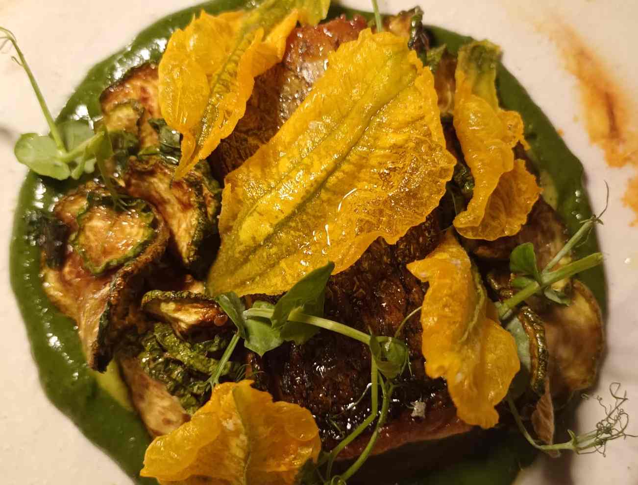 Il mare torna a tenere il discorso da protagonista nei secondi curati da Francesca: nel filetto di ricciola con salsa alla mediterranea, mentre l’incontro con gli orti lo si celebra nella spigola arrosto sulla sua pelle con zucchine alla scapece e la loro crema e i fiori di zucca fritti e cristallizzati a conferire al piatto una sapidità decisa e rassicurante. Nel solco della tradizione casalinga dolciaria della Costiera la Rosa di pan brioche su crema al limoncello, da gustare anche in essenza per congedarsi da un’esperienza autentica.
