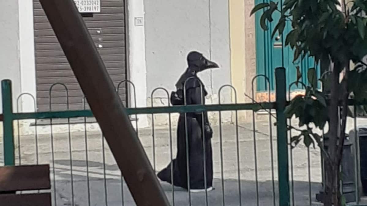 Secondo quanto riportato da Italia2.tv il “Medico della peste” ha suscitato paura tra i bambini che giocavano serenamente nel parco giochi comunale, così come tra gli adulti che l’hanno incontrato sulla loro strada.