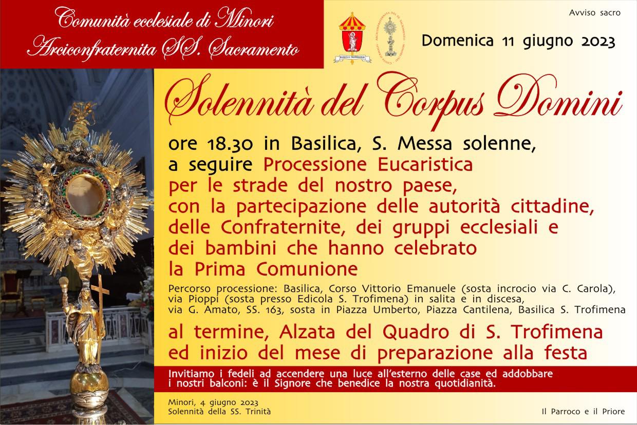 Il legame della festa del Corpus Domini con Santa Trofimena non e affatto casuale: il 13 Luglio, e, dunque, tra poco più di un mese, ricorrerà, infatti, la festa della santa patrona di Minori.