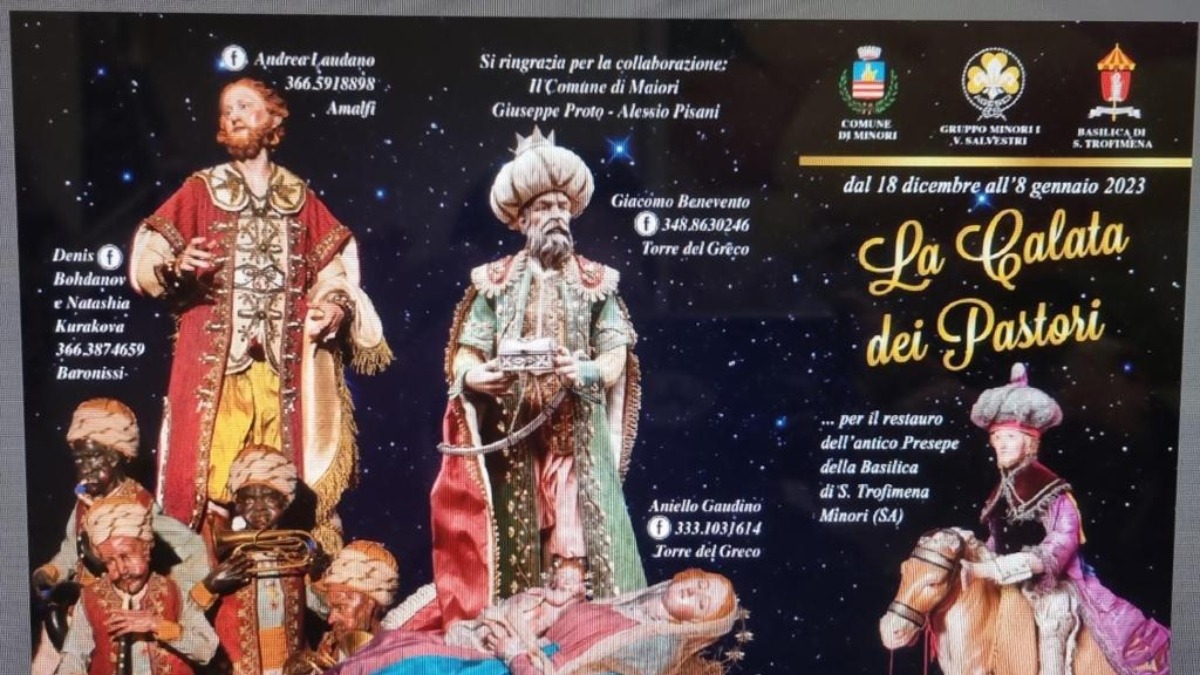 Un programma storico che abbraccia intere generazioni di minoresi. Prenderà il via il prossimo 18 dicembre alle 19, presso la chiesa di Santa Trofimena a Minori, la Calata dei Pastori. L’iniziativa permetterà ai fruitori di ammirare le straordinarie creazioni degli artisti pastorali campani. Sotto la direzione del maestro Antonio Sorrentino è stato realizzato un percorso espositivo che porta il visitatore ad immergersi nella bellezza della tradizione, a perdersi e sognare tra volti, espressioni e trine dorate.