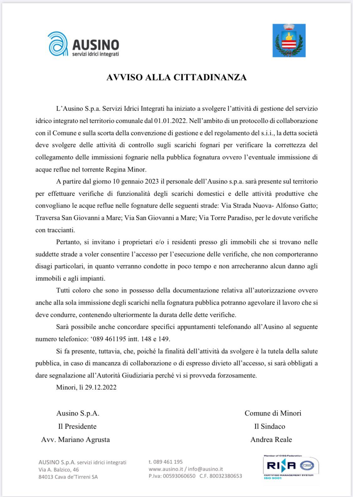 E’ questo lo scopo dell’attività di controllo dell’azienda Ausino che gestisce i servizi idrici integrati nella città della Costiera Amalfitana a partire dal 1 gennaio dello scorso anno.