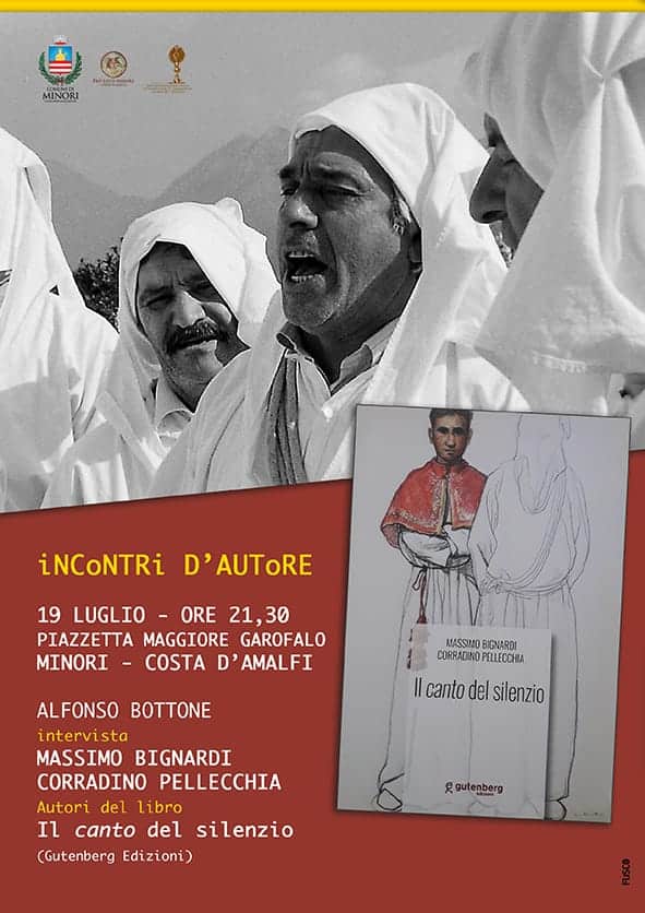 Domani 19 luglio alle 21,30 alla Piazzetta Maggiore Garofalo a Minori Alfonso Bottone intervista Massimo Bignardi e Corradino Pellecchia autori del libro Il canto del silenzio (Gutenberg Edizioni 2021).
