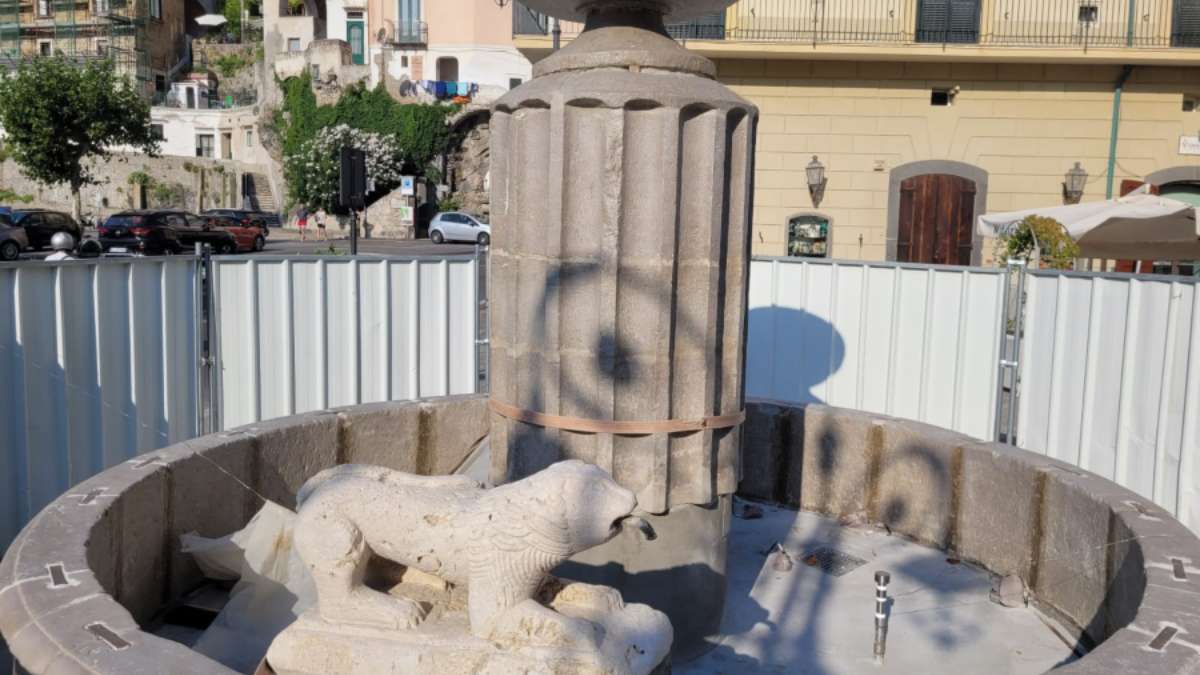 «La vasca – ha proseguito l’ex sindaco di Minori – di forma circolare, strutturata per accogliere il filo d’acqua sgorgante dal catino sferico posto sulla sommità della colonna e chiusa da una spessa balaustra di pietra grigio-chiara, come pure i due agevoli scalini della medesima pietra, recano tante e tali mutilazioni negli angoli e nelle giunture da urlare il disastro!».
