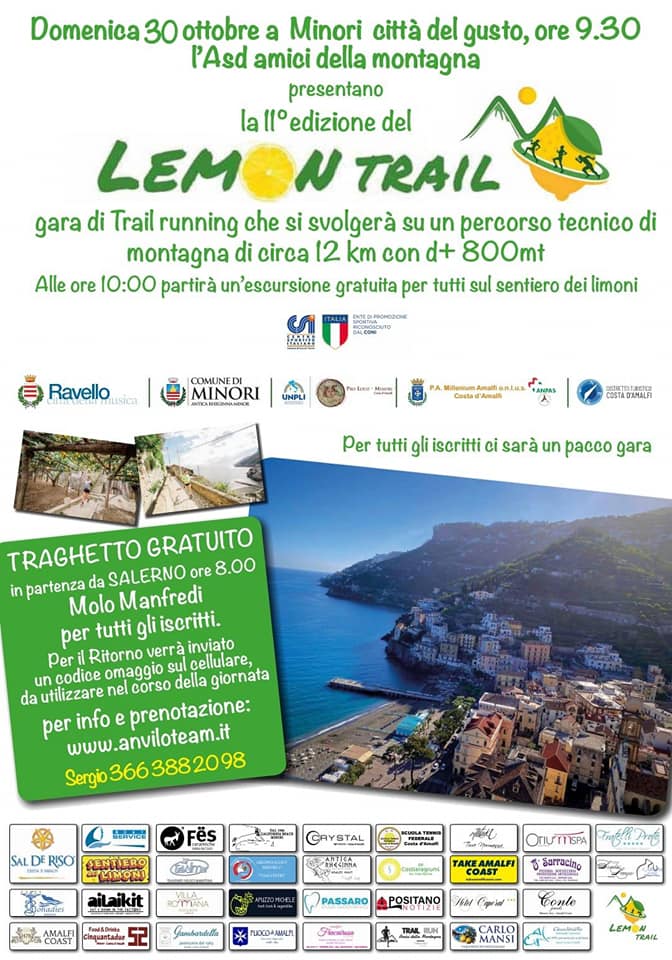 Buone notizie per tutti gli amanti della corsa e del trekking: il 30 ottobre a Minori torna il Lemon Trail, un percorso a picco sul mare della Costiera Amalfitana che si snoda tra i limoneti.