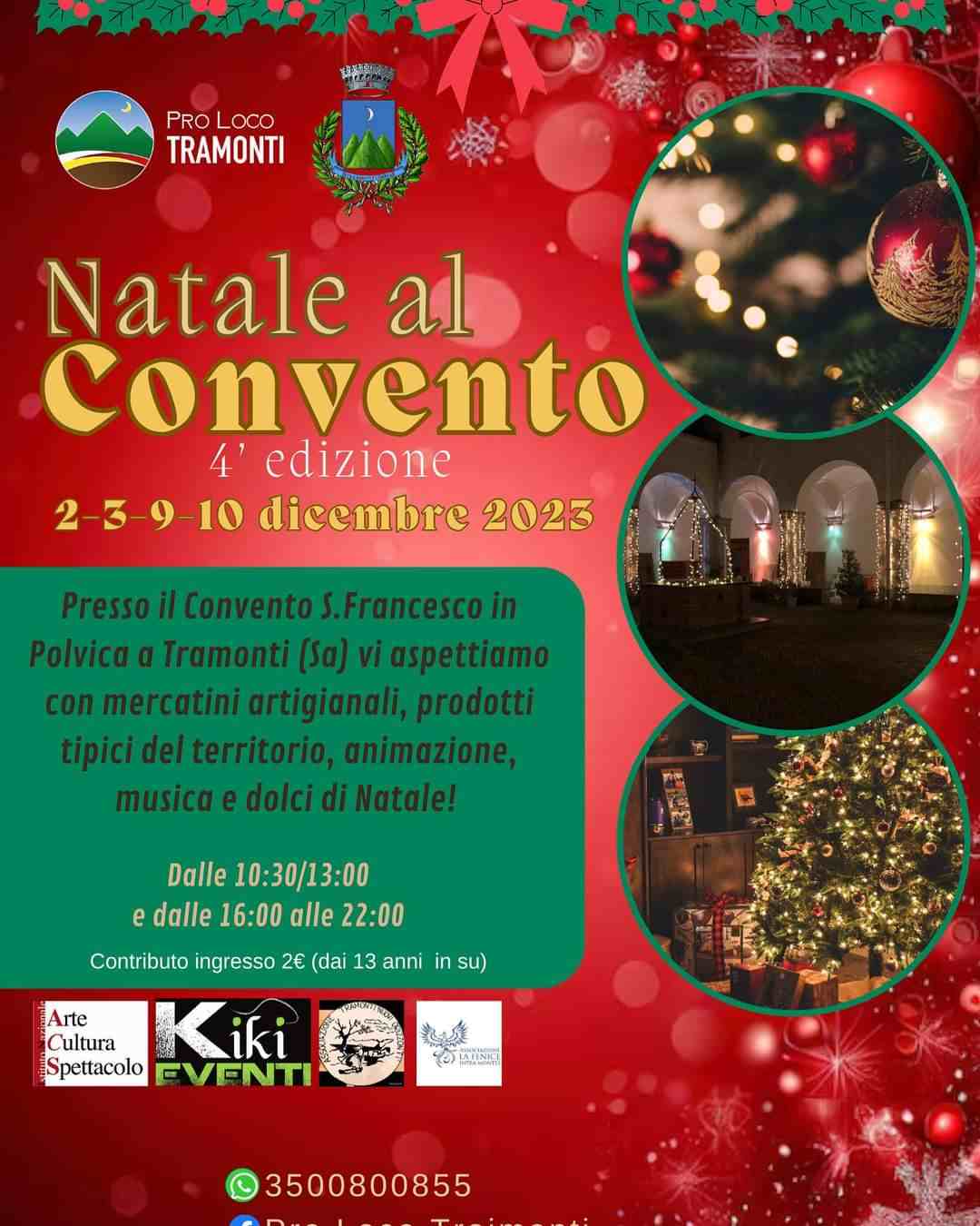 Si accende la magia del Natale anche a Tramonti: nella città interna della Costiera Amalfitana prenderà, infatti, il via, a partire da domani, la quarta edizione de “Natale al Convento”, interessante manifestazione all’insegna di artigianato, buona musica e tipicità del territorio che si svolgerà, nei weekend del 2-3 dicembre e del 9-10 dicembre all’interno del Convento di San Francesco a Polvica.