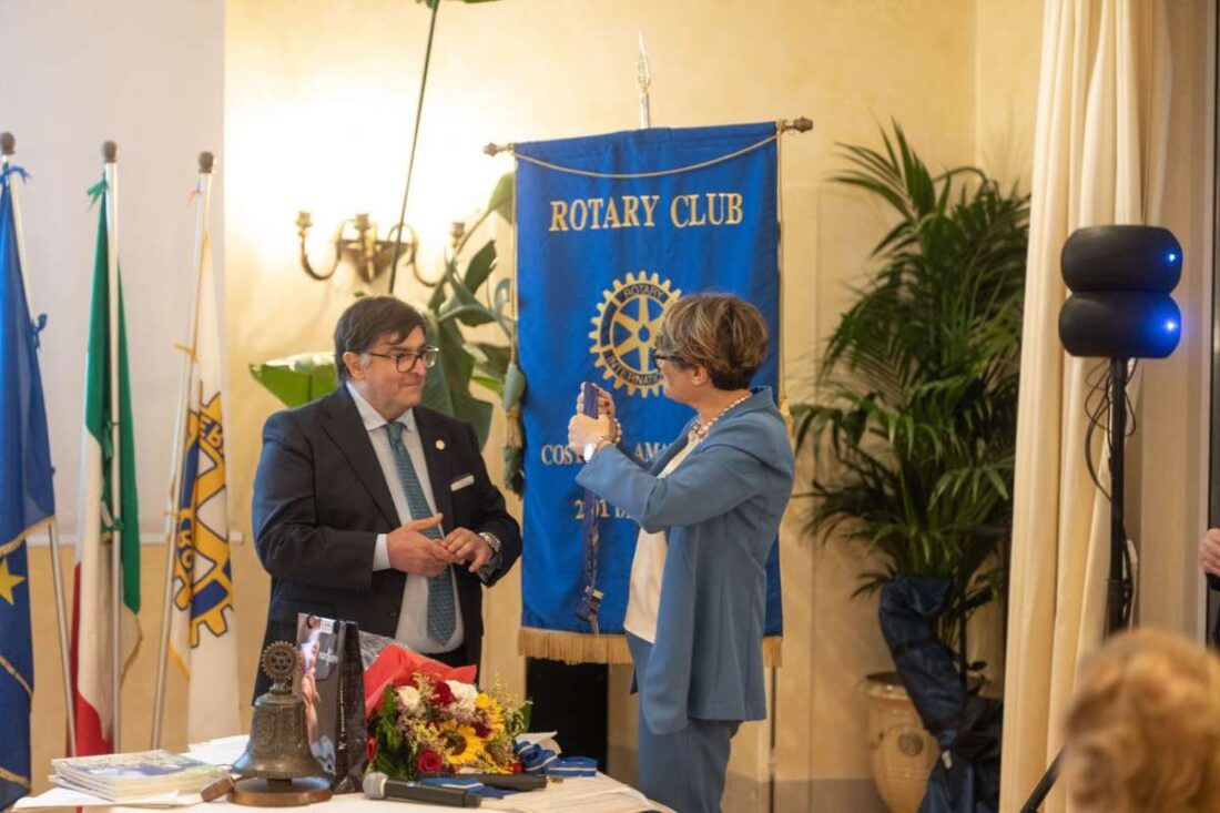 Sabato 12 luglio 2025, nella prestigiosa location dell’ Hotel Caruso di Ravello si è celebrato il passaggio delle consegne del Club Rotary Costiera Amalfitana per l’ anno 2025/26 fra l’ ing. Amalia Pisacane e il dott. Salvatore Ulisse di Palma alla presenza del PDG Distretto Rotary 2101 Antonio Brando, della Governatrice dell’ Inner Wheel Trofimena Forte, della Presidente Inner Wheel Costa d’ Amalfi Rosaria Marciano, del Facilitatore del Distretto Roraty 2101 Ciro Senatore, dell’ Assistente del Governatore del Distretto Rotary 2101 Carmine Nobile, del Presidente del Rotary e – club Due Golfi Noemi Taccarelli, del Capogruppo A.G.E.S.C.I. Amalfi Gaetano Ala, del Comandante della Compagnia Carabinieri di Amalfi Capitano Alessandro Bonsignore, del Luogotenente C.S. Giorgio Covato, del Direttore dell’ Archivio di Stato di Salerno Dott. Salvatore Amato.