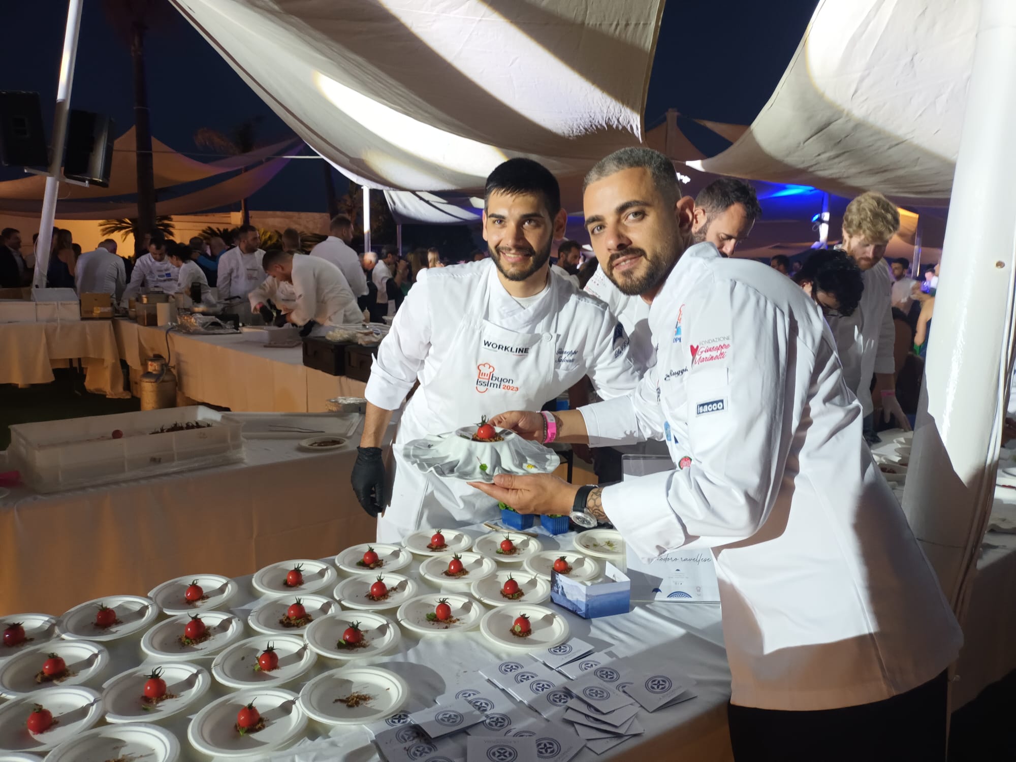 A presentare la portata, nell’ambito della miriade di eccellenze culinarie presentate dagli oltre cento chef presenti al consueto evento organizzato, come ogni anno, da Paola Pignataro e Silvana Tortorella, con la collaborazione di OPEN Odv, organizzazione non-profit per la ricerca contro i tumori pediatrici e, in particolare, il neuroblastoma, è stato lo chef Enrico Ruggiero insieme al suo sous-chef Giuseppe Salvato.