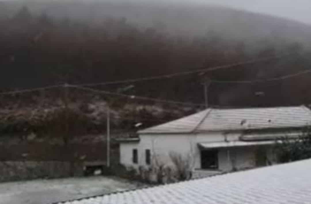 Prima nevicata del 2022 in Costiera Amalfitana. Questa mattina i fiocchi di neve hanno colorato di un candido bianco il Valico di Chiunzi.