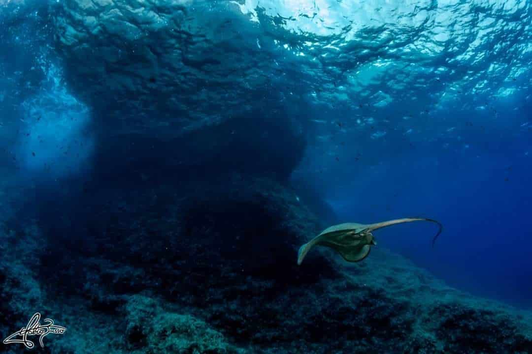 Incredibile avvistamento a Punta Campanella dove è stato fotografato un Trigone Viola mentre “vola” nelle acque del Parco.