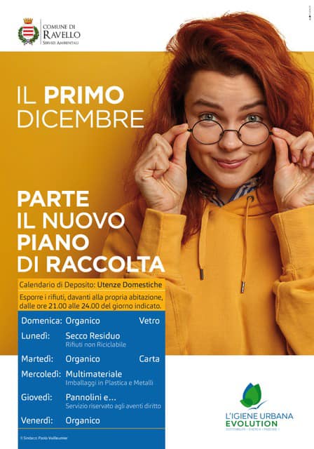 Partono domani, giovedì primo dicembre, le nuove modalità di raccolta dei rifiuti sul territorio comunale di Ravello.