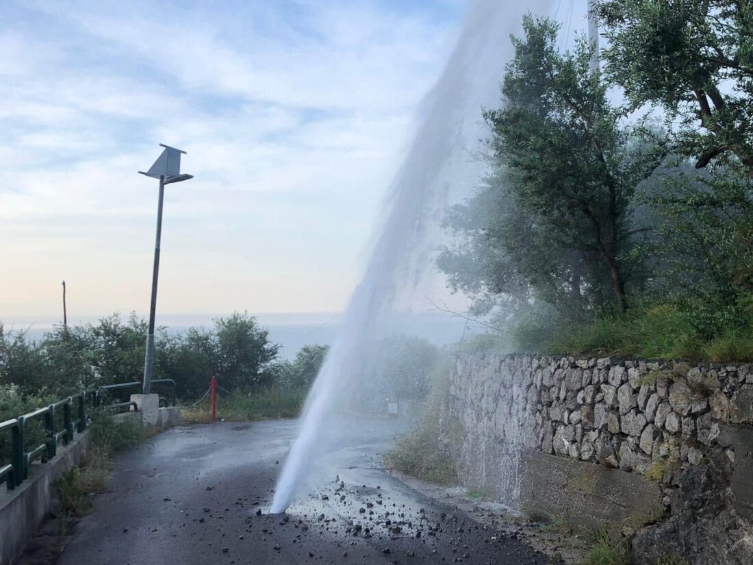 Guasto alla condotta idrica a Ravello questa mattina che ha provocato la fuoriuscita di un getto d’acqua a fortissima pressione in via Zia Marta.