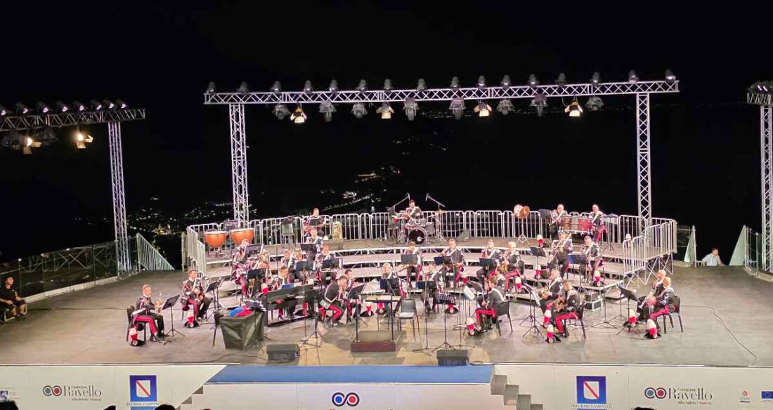 Grande seguito di pubblico per il concerto della Fanfara del 10° Reggimento Carabinieri “Campania” Napoli organizzato sul Belvedere di Villa Rufolo dalla Fondazione Ravello, d’intesa con l’Arma dei Carabinieri. La serata, mirabilmente condotta da Veronica Maya, ha coinvolto società del territorio, autorità civili e militari insieme ai tanti turisti che continuano a scegliere Ravello e la Costiera Amalfitana come luogo prediletto delle loro vacanze.