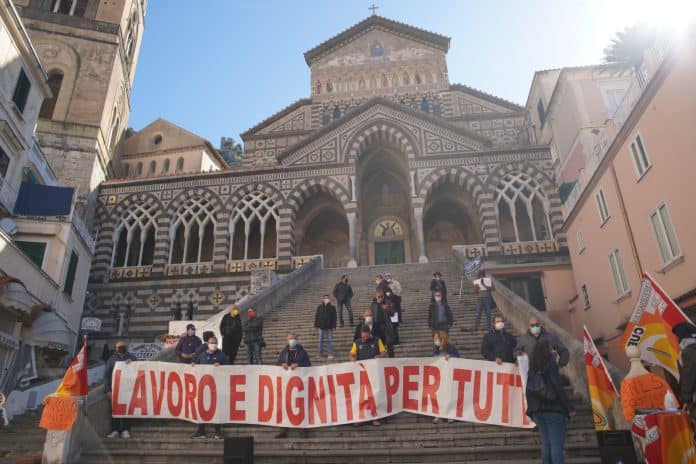 Lo scorso 10 aprile 2021, delegazioni Lavoratori Stagionali A.n.l.s., Flaica Cub Regione Campania, Abbac, Ncc, guide turistiche, ristoratori e delle tante piccole partite IVA locali, sono scesi nelle quattro piazze simbolo del turismo in Campania (Amalfi, Capri, Sorrento, Ischia) mossi dal voler perseguire obiettivi comuni (lavoro in sicurezza, dignità, opportunità). Il prossimo 1 maggio 2021 saremo in presidio presso il piazzale del Santuario di Pompei per condividere percorsi e prospettive.