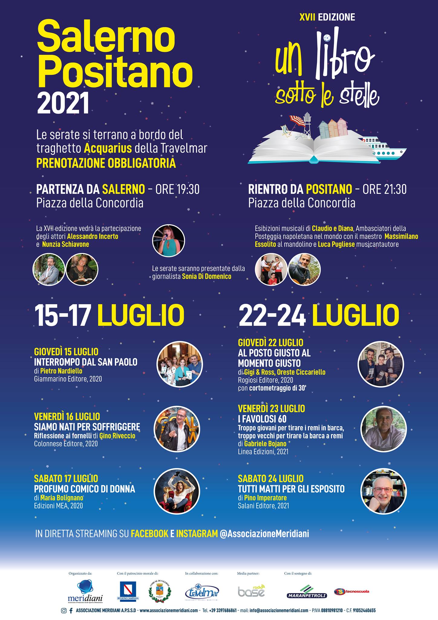 “Cresce l’attesa per la consolidata rassegna Un libro sotto le stelle – ha dichiarato il Sindaco di Salerno, Vincenzo Napoli – ormai appuntamento nodale per la cultura in costiera, soprattutto per la formula “in navigazione” adottata quest’anno dall’Associazione Meridiani, realizzabile grazie all’armatore Marcello Gambardella della Tarvelmar e che sembra già riscontrare grandissimi favori da parte della popolazione salernitana e non solo”.