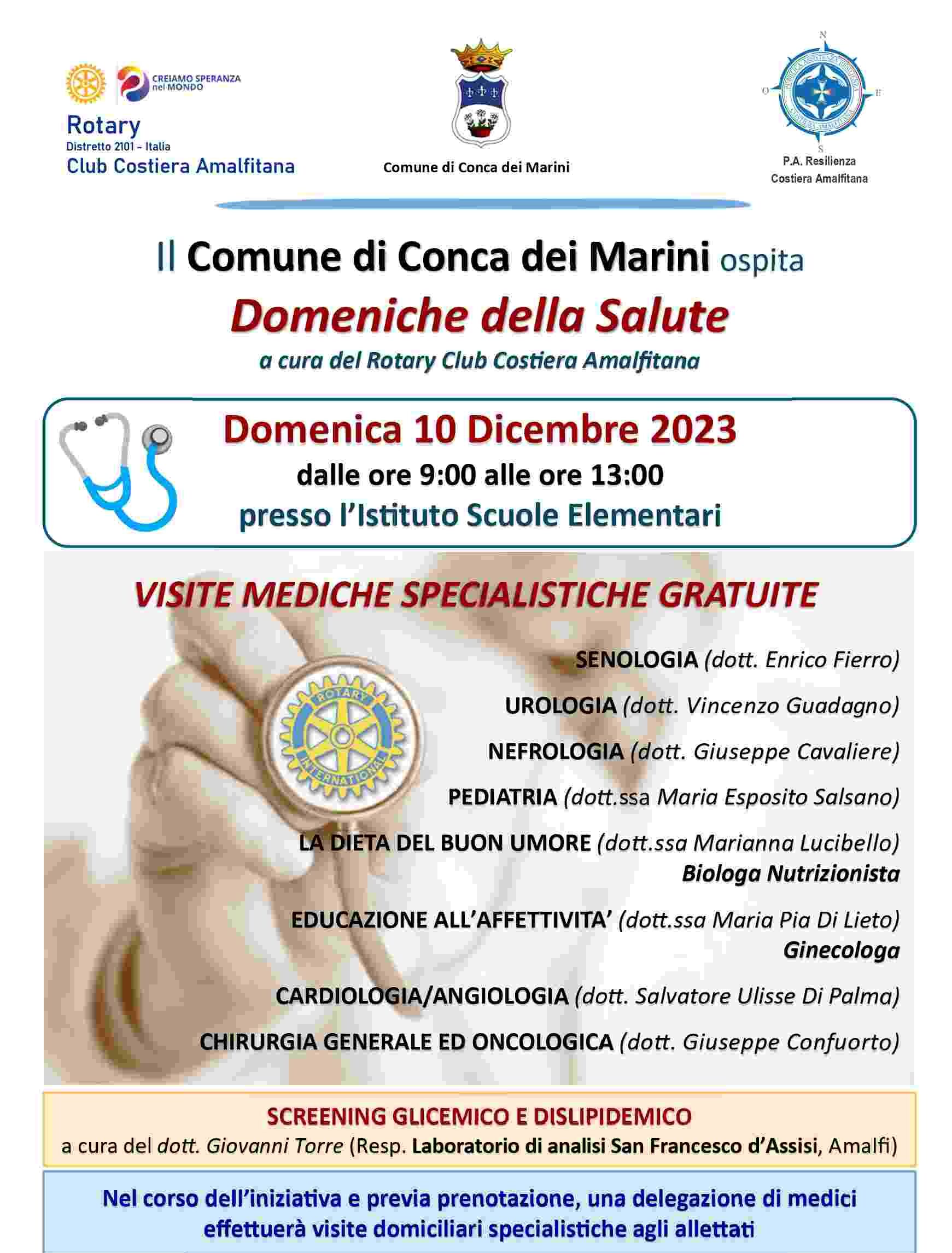 Il Comune di Conca dei Marini ospita le Domeniche della Salute a cura del Rotary Club Costiera Amalfitana, in collaborazione con la Pubblica Assistenza Resilienza.