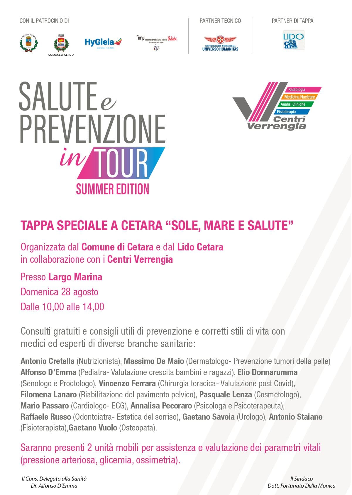 Sole, mare e salute. Questo il filo conduttore dell’iniziativa “Salute e prevenzione in Tour”, organizzata da Comune di Cetara e Lido Cetara in collaborazione con i Centri Verrengia.