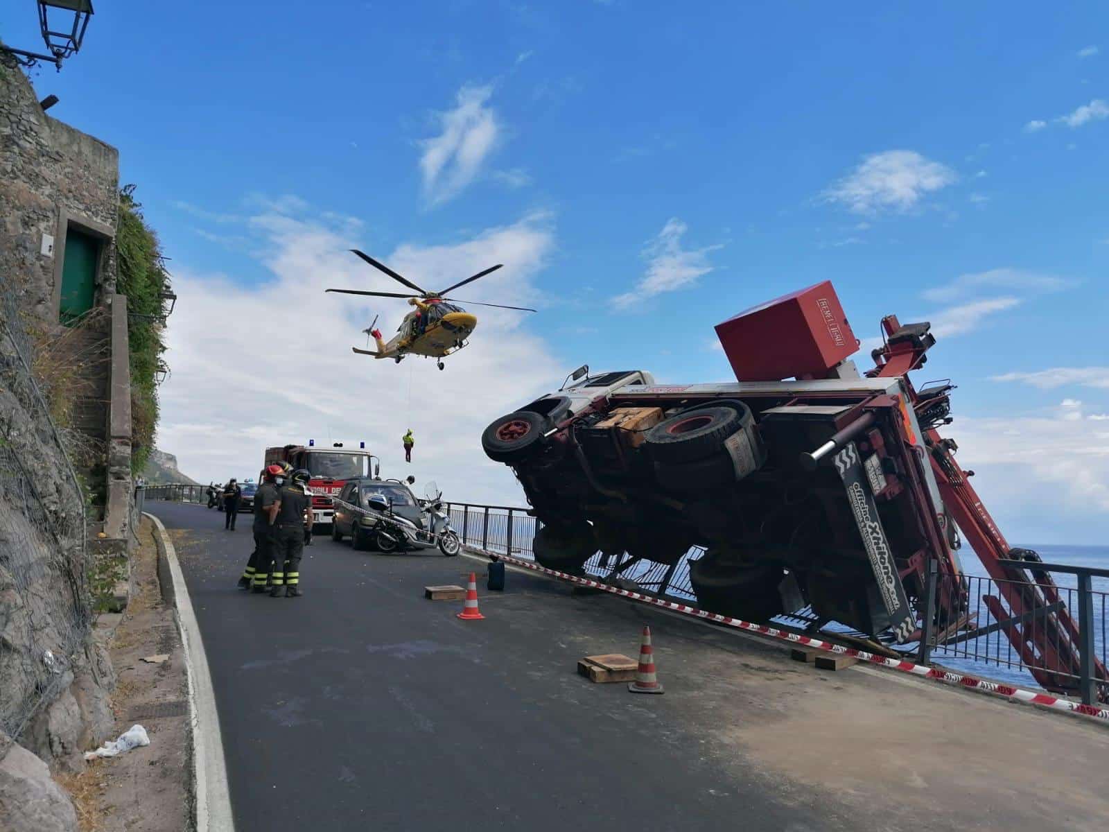 L’autogru è stata riposizionata sulla careggiata durante la tarda serata di ieri con l’ausilio di due mezzi di cui uno dei Vigili del Fuoco. La Statale Amalfitana è stata quindi riaperta dall’Anas a senso unico alternato dalle 23.30 di ieri sera. In giornata il posizionamento dei new jersey a protezione della ringhiera che è stata sfondata dalla caduta dell’autogru.