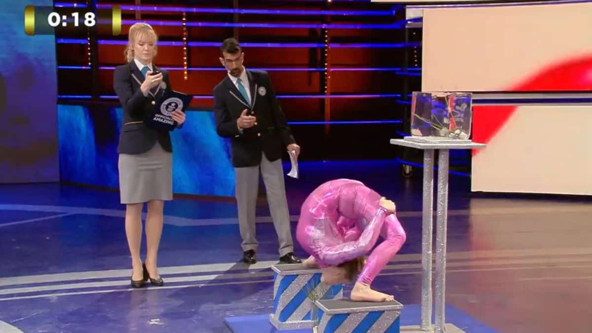 Una contorsionista ha provato a battere un record assurdo ed è rimasta a testa in giù nel corso dell’ultima puntata dello Show dei Record.