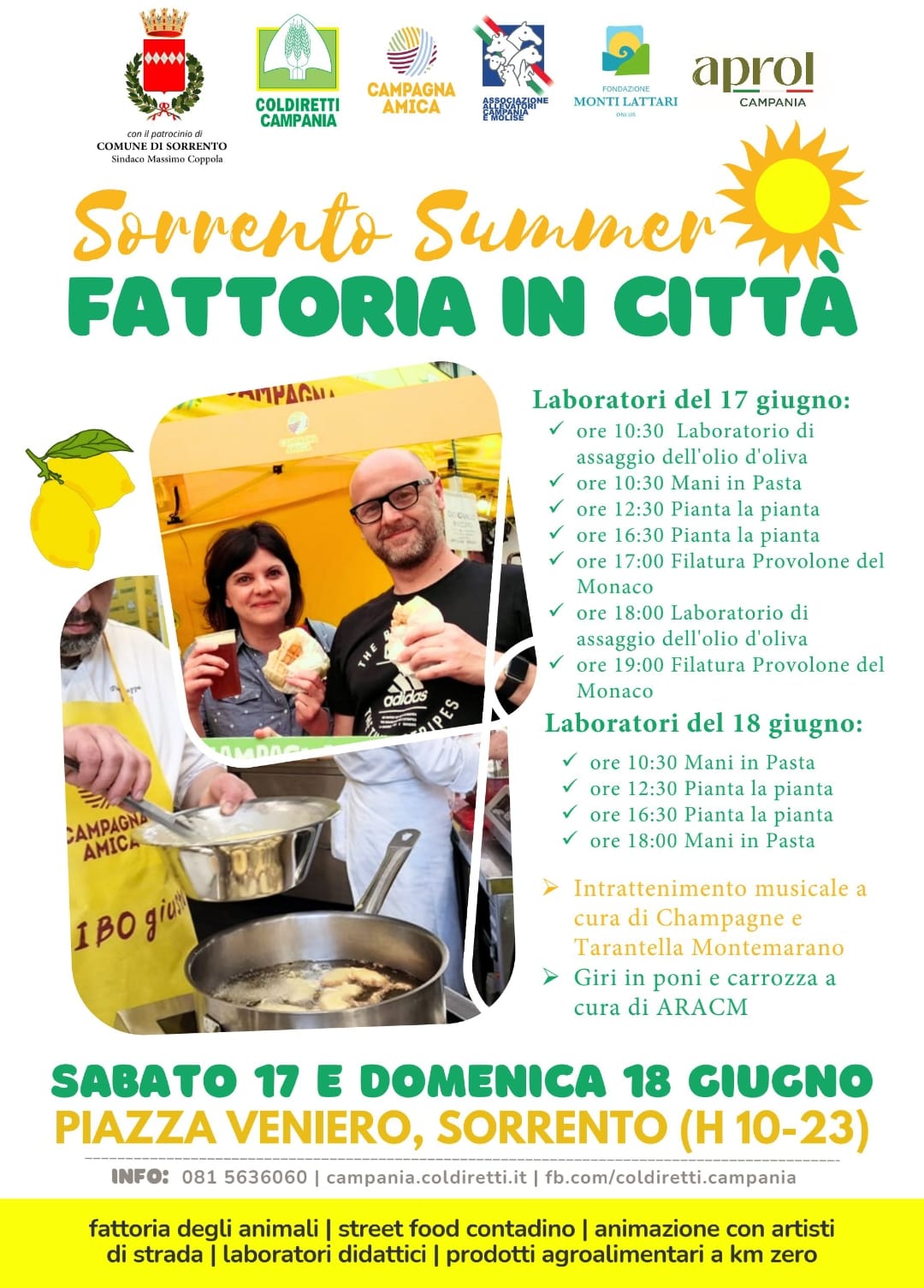Portare le aziende agricole ed i loro prodotti nei centri urbani: è con questo scopo che Sorrento ospiterà, oggi e domani, fino alle 23, in piazza Veniero, l’iniziativa “Sorrento Summer: Fattoria in città”, organizzata da Coldiretti Campania con il patrocinio del Comune di Sorrento e della Fondazione Monti Lattari.