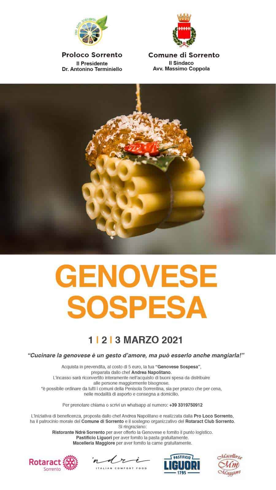 Sono i numeri dell’iniziativa di solidarietà “Genovese sospesa”, che si è svolta nei giorni 1, 2 e 3 marzo scorsi, proposta dallo chef Andrea Napolitano e realizzata dalla Pro Loco Sorrento, con il patrocinio del Comune di Sorrento ed il sostegno organizzativo del Rotaract Club Sorrento.