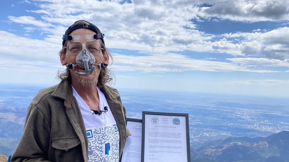 L’uomo, di 53 anni, ha deciso di battere un record mai visto prima, spingendo una nocciolina mentre scalava una montagna, precisamente la montagna più alta del Nord America (il Pikes Peak). Il tutto utilizzando uno strano accessorio attaccato al suo naso.