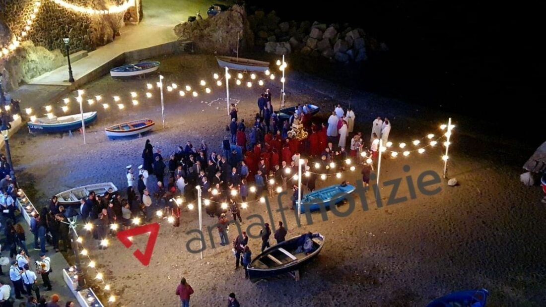 Ad essere inscenata dagli attori e da tutto il set, è stata una (finta) processione della Maddalena, probabilmente il momento più importante dell’anno nel piccolo comune costiero, espressione della religiosità popolare atranese, che si svolge ogni anno, di norma, il 22 luglio.
