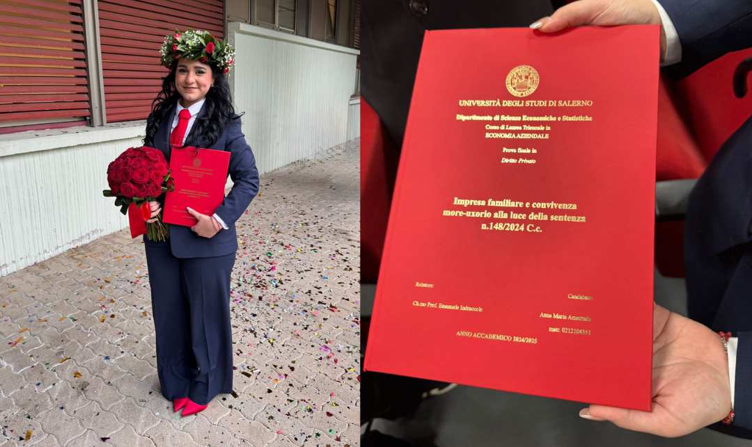 Anna Maria Amatruda ha conseguito la laurea in Economia Aziendale presso l’Università degli Studi di Salerno, raggiungendo un traguardo importante al termine di un percorso fatto di impegno, costanza e determinazione.