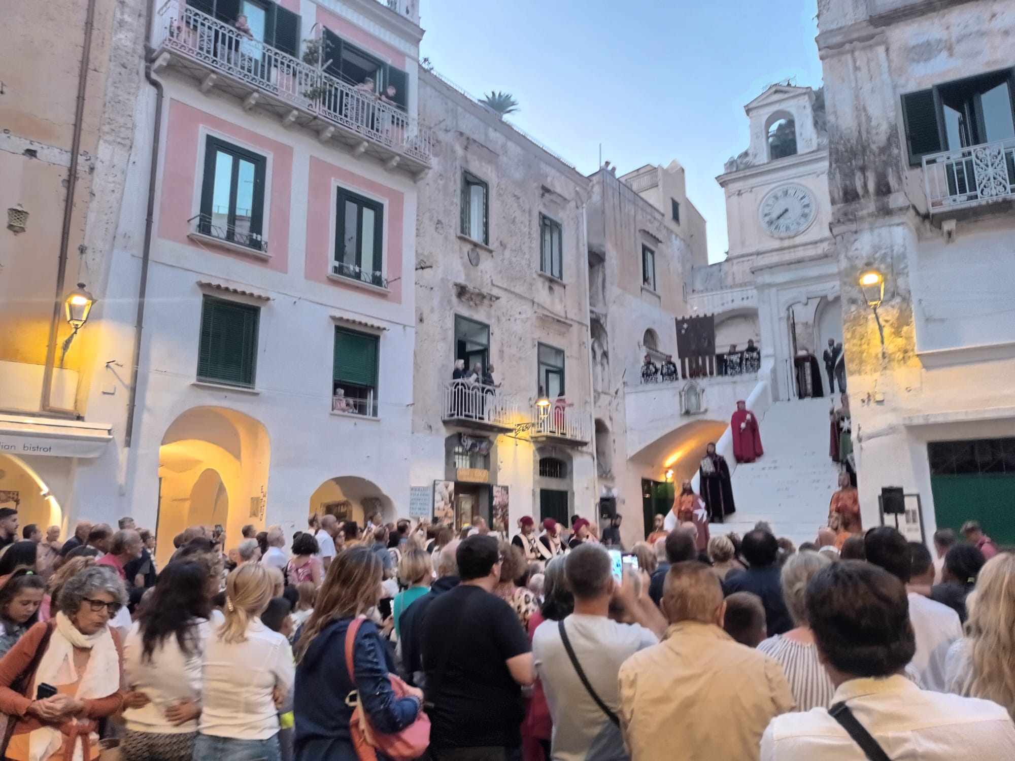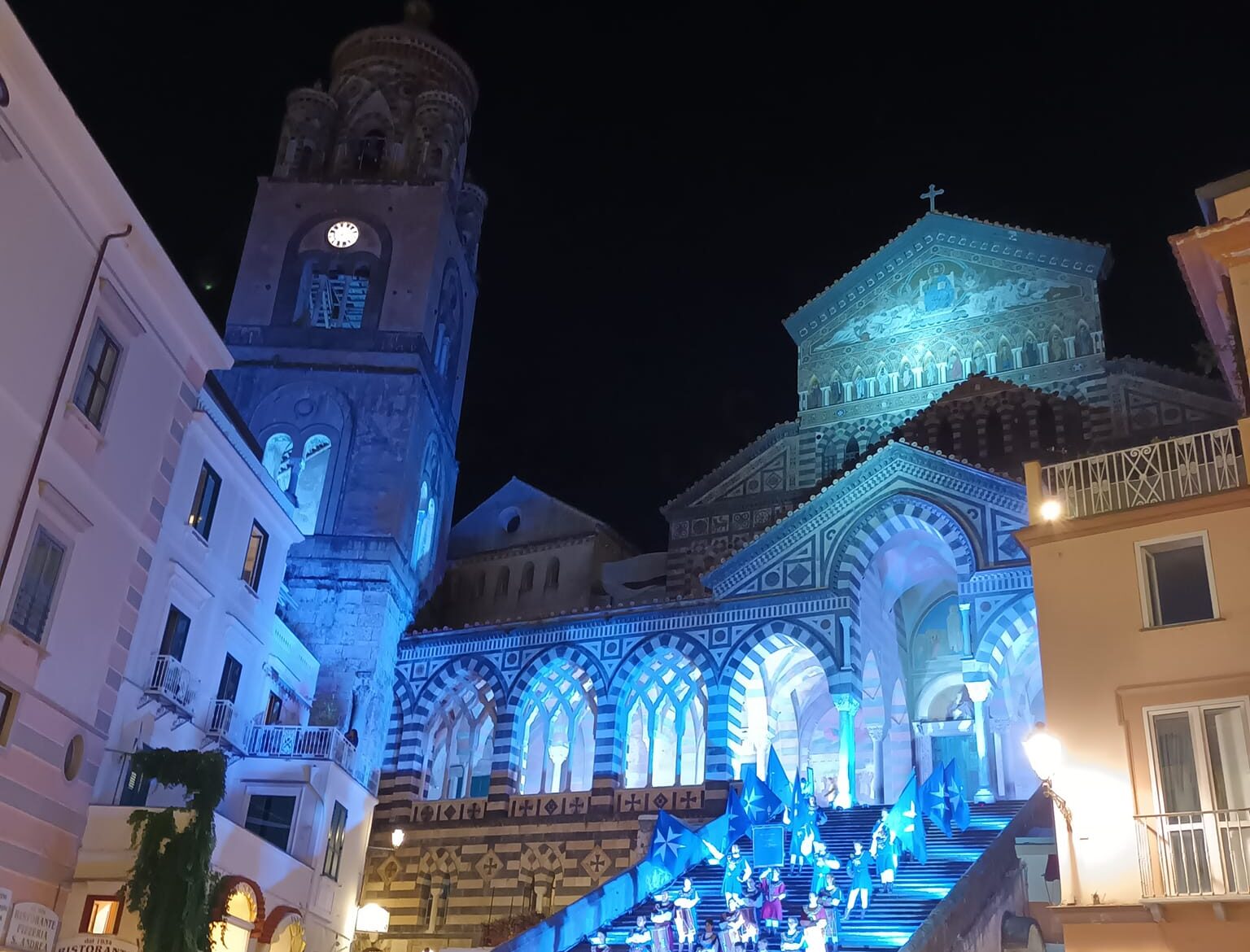 Al termine della cerimonia, l’emozionante corteo storico ha fatto rientro ad Amalfi dove, sul sagrato del Duomo di Sant’Andrea, Perrotta è stato omaggiato anche da cittadini, turisti e visitatori presenti nell’Antica Repubblica Marinara. Il meraviglioso “spettacolo del fuoco” realizzato dalla compagnia Lumen Invoco ha saputo chiudere il sipario in bellezza su una serata, come sempre, davvero emozionante.